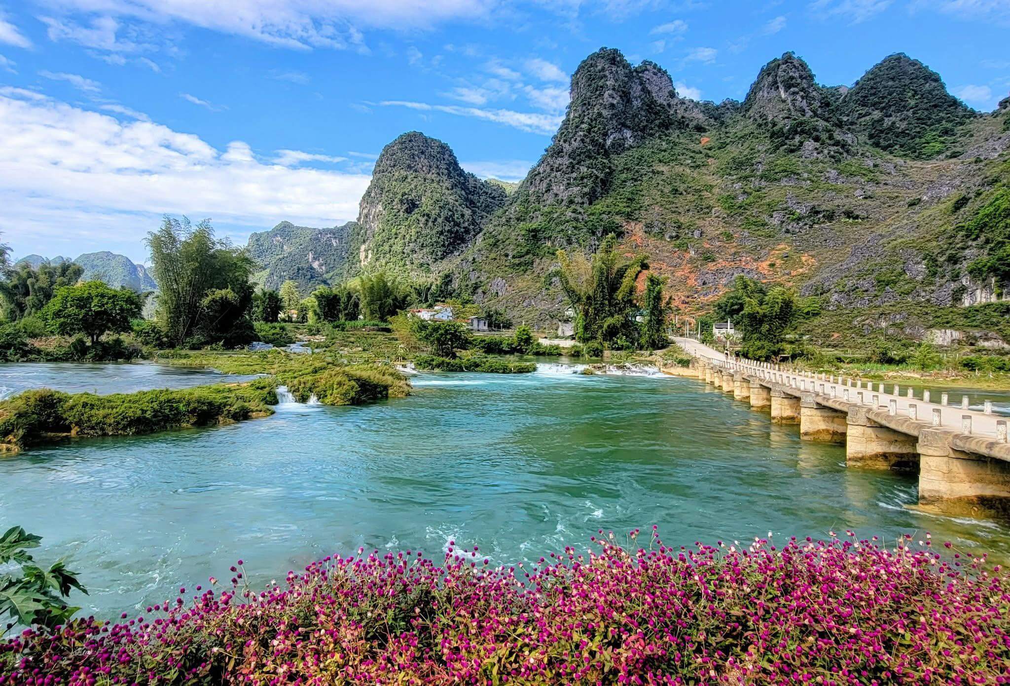 The feeling of riding on the cliffside looking down at the emerald Nho Que River below will be an unforgettable memory. You will also have time to take a boat on the river to explore the magnificent Tu San Canyon before spending the night in Meo Vac.